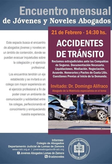 Contamos con una sólida trayectoria especialización sobre responsabilidad civil y accidentología vial. He dictado cursos en el CALZ sobre estos temas. Esa profundidad de conocimiento es la que ponemos a su servicio para obtener la máxima indemnización posible.